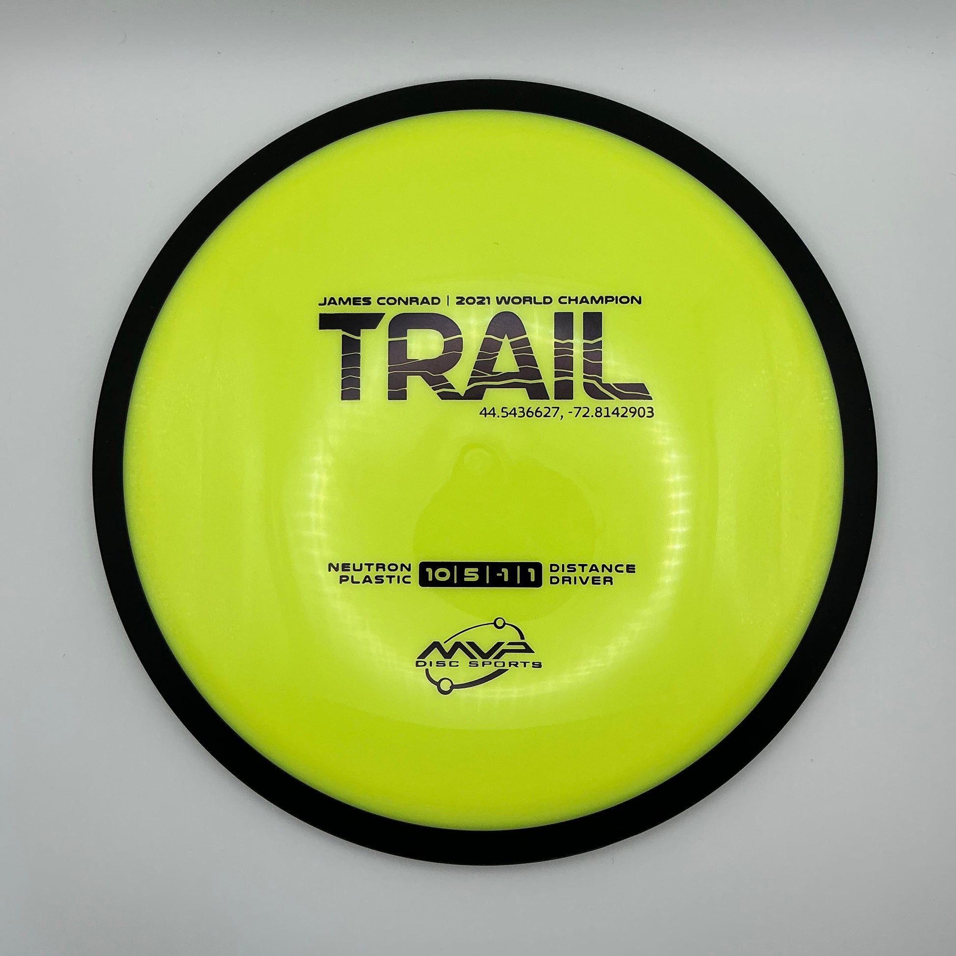 The first official 10-speed driver in the MVP lineup, the Trail is a stable-understable distance driver that, as you might expect of a Conrad disc, excels in hyzer-flip drives and turnovers. Releasing with flight numbers of 10 | 5 | -1 | 1, throwers of all power levels will find the Trail to be an exceptionally responsive driver for a variety of shot shapes, making the Trail a phenomenal disc for all skill levels.