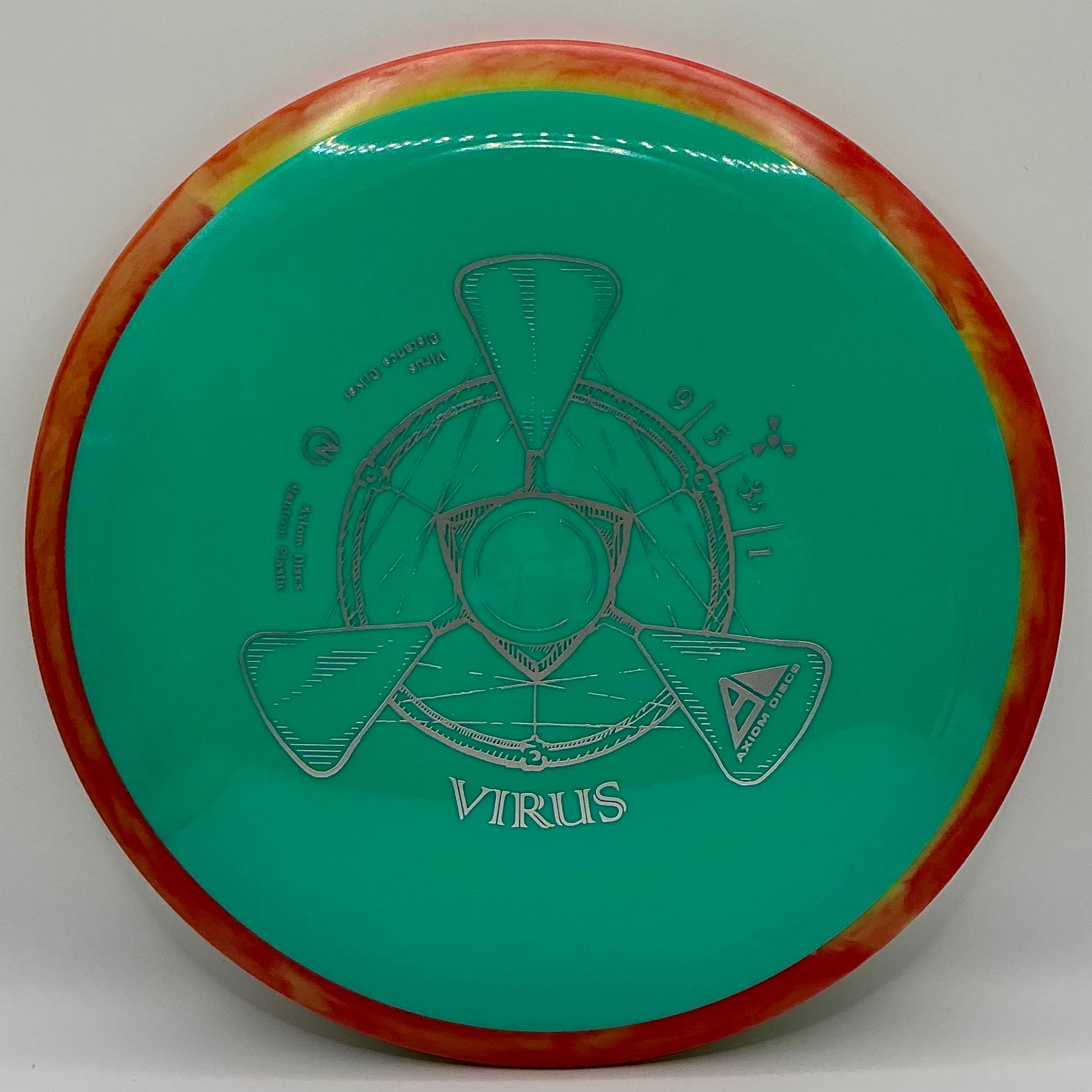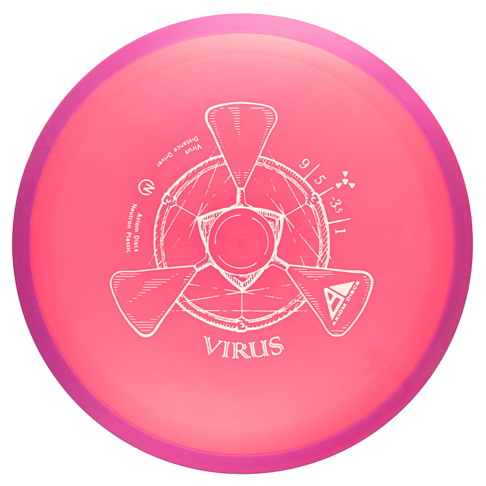 The Virus is Axiom’s easiest-to-throw distance driver, with a glide and responsive understability that keeps it in the air. Power throwers will be able to flex huge turnover shots with straight forward fade. Average throwers will be able to extend and shape lines using the Virus’ turn and gentle fade. Compared to the MVP lineup, the Virus resembles a worn-in Impulse.