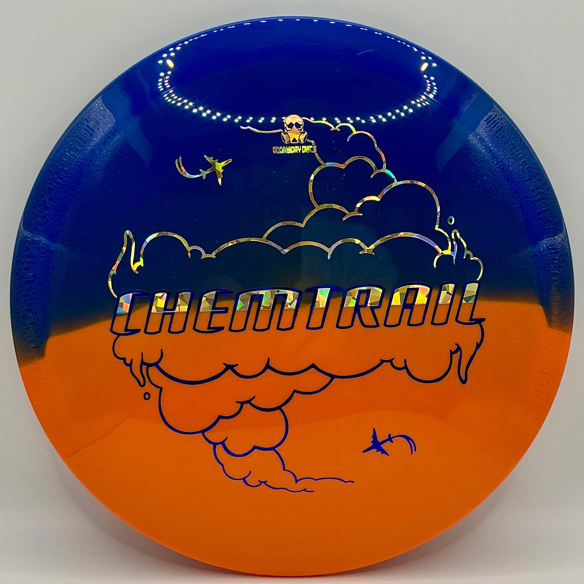 The Chemtrail is a fairway driver designed to "hold the line," following the course and angle upon which you release the disc, just like jets leave toxic, DNA-altering chemtrails in straight lines across the skies. As part of the Conspiracy Line of discs, this driver fills a very important slot in almost every player's bag...one that would-be authoritarian leaders across the globe seek; that of complete control.