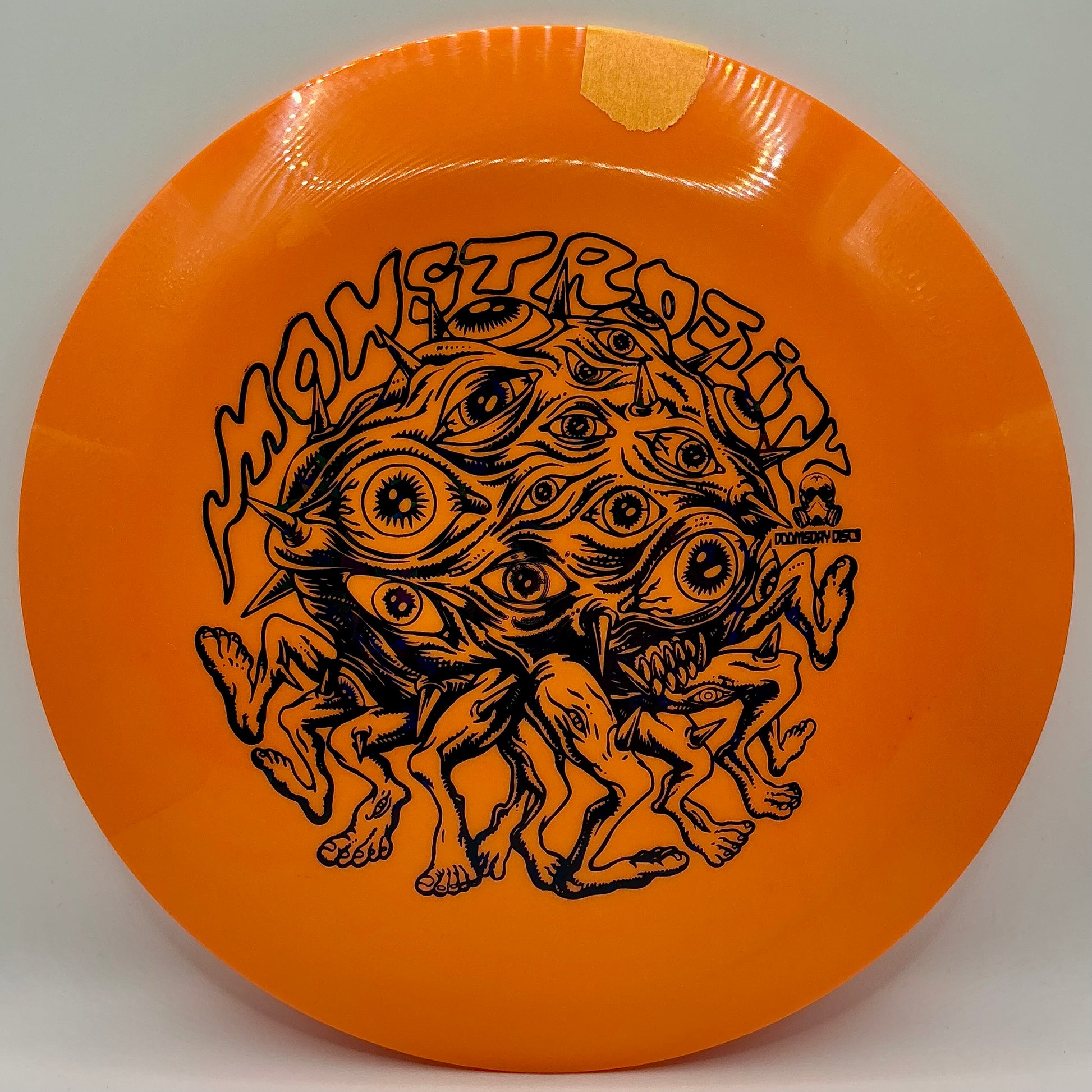 The Monstrosity is a variable rim-width disc design that is related to the "Abomination" (another variable rim). The Monstrosity has two sides with wide rims and 2 sides with a more narrow rim width. This not only provides a choice of sides for different grip preferences for players, but also creates an uneven weight distribution resulting in varying moments of spin inertia around the center axis. While the science behind this technology is new, Doomsday Discs is excited to create a Monstrosity that players can use to test flight paths and spin momentum with the different distribution of weight in the disc.