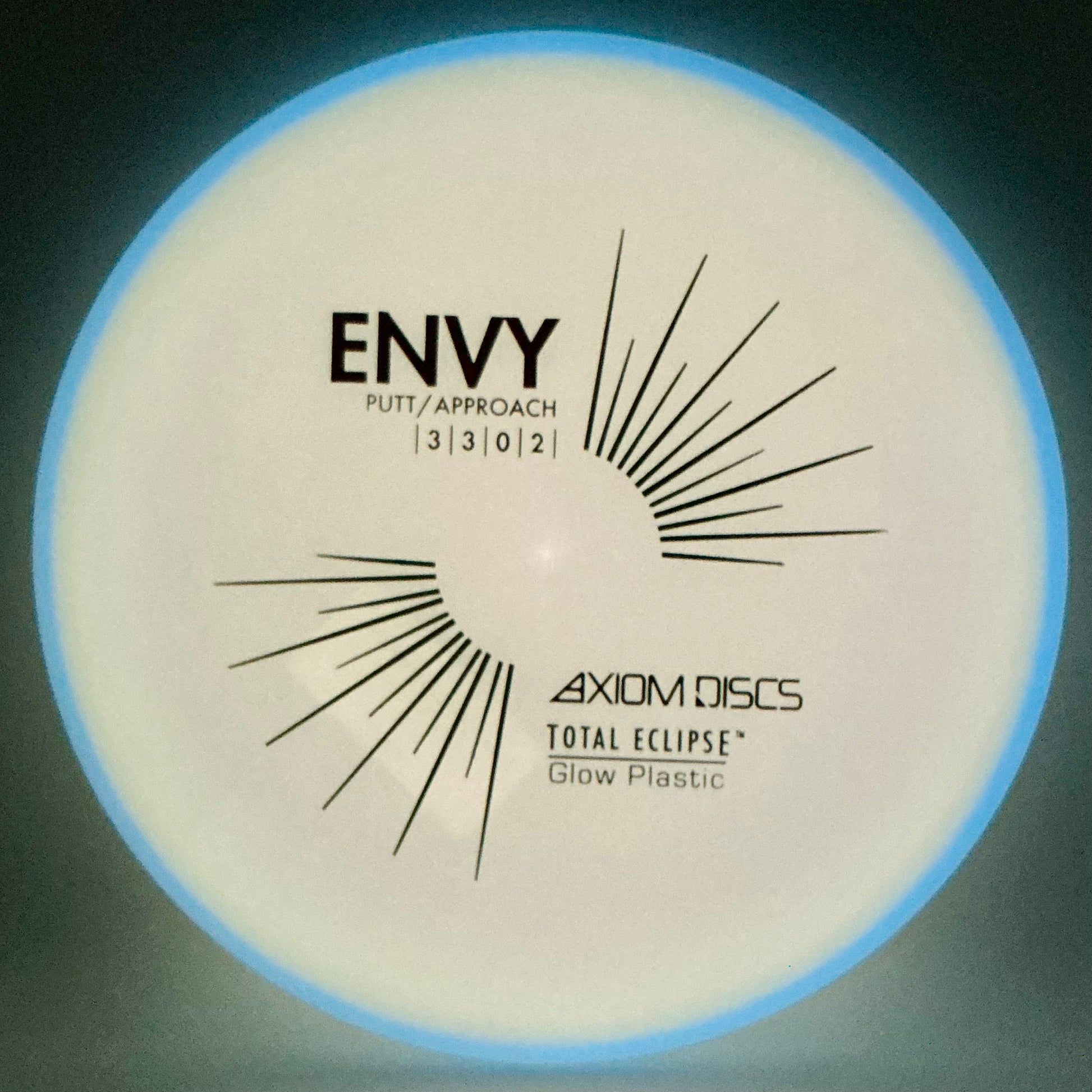 The first addition to our stock Total Eclipse catalog for this release is the Axiom Envy! With a reputation as one of the best throwing putters on the market, it’s important to us to offer the Envy in as many different plastics as we can to ensure everyone is able to find their favorite. Total Eclipse brings the Envy even closer to that goal by adding a range of color glow options to choose from. A slightly overstable putter, the Envy maintains a straight flight with subtle fade that players can depend on whether it be for normal or glow rounds. Now available with color glow cores and rims in Green, Blue, Purple, Teal, and White, get your Total Eclipse Envy anytime of the year!
